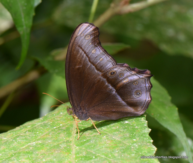 This is not a common butterfly and inhabits the dark undergrowths in primary forests. These photos were taken on 3 March 2013 @ 3:10 pm. It is an unusual satyrid because the insides of its wings are unusually suffused with a brilliant blue-purple that resembles that of the Dark Blue Jungle Glory, albeit a tinier version.