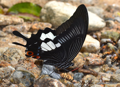 This butterfly is umistakable with its impressive size in flight. More common in the hills and deeply wooded areas. It can be differentiated from P. helenus by the blue spots on the HW undersides.