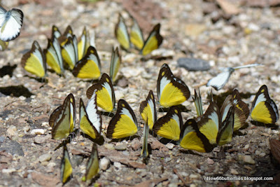 Probably the commonest pierid that inhabits the forested path, it is found throughout the year but most abundant from March to July. It is an unmistakable butterfly, its white uppersides contrasting with its chocolate bordered undersides and the lemon yellow hindwings against its white forewings on the undersides (pix below). Sometimes, they can be seen congregating in large numbers with Graphiums and other pierids on a sunny day on a moist spot.