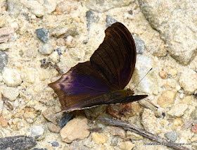 Above pictures of a female 13 May 2014 @ 13:13 - 13:18. The female has decidedly more falcate forewings than the males and lesser areas of metallic blue-purple sheen on the uppersides. They can be differentiated from T. clarissa by their white post-discal spots on the HW (The chevron-shaped post-discal spots of T. clarissa are dark purple in colour).